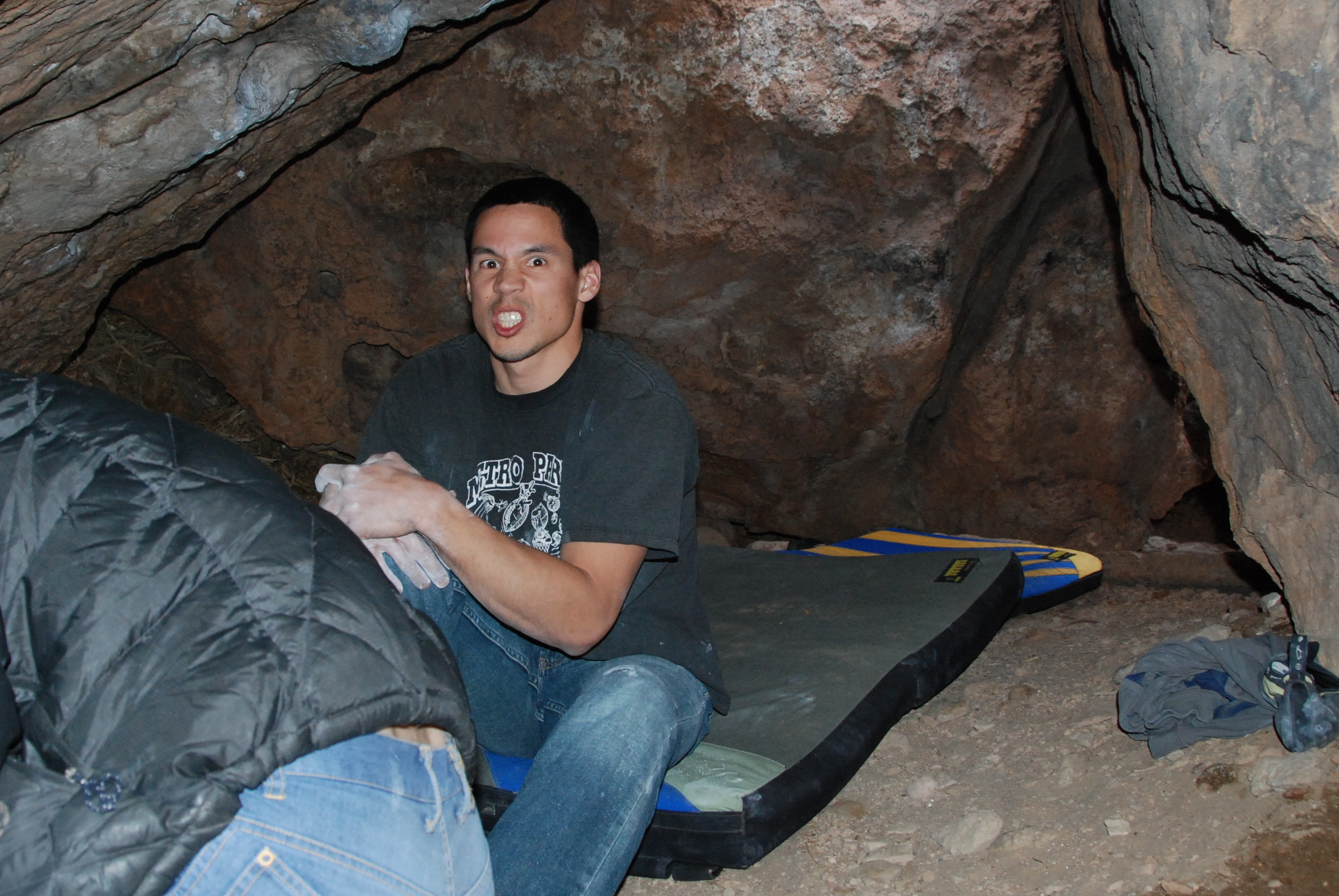 Speaking of Ho, he FA’d the top-out to the infamous Whiskey problem Caught in the Act yesterday calling it “the Thing” V8-ish (starting on the finish jug of CitA).  The complete line including the Caught in the Act traverse hasn’t been done yet, but I’m guessing someone will take it down quite soon now that it’s possible.