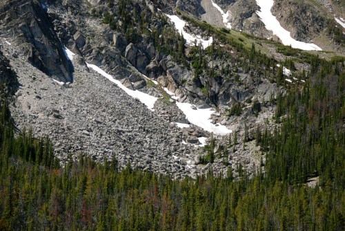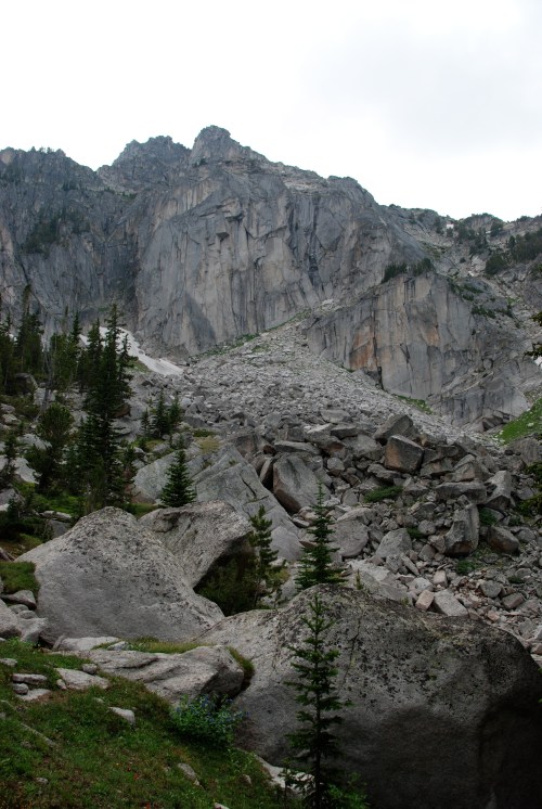 I made two more solo trips since then. I went exploring at Upper Mason Lake with my light pad, since I wasn’t sure what I was going to find. I would say there isn’t as much potential in the Upper Mason talus as the Lower Mason talus, but I did find some good looking boulders below the lake on the way out. Because I was alone with a smaller pad, I had a hard time finding anything worth climbing that had a decent landing. I got lucky and found a sweet, steep compression problem on nearly perfect rock. It went at about V3 and there is an even lower start about five feet down that I didn’t try b/c of the pad situation. I called it “A River Runs Through It” (I could hear a stream running underneath it) and it’s also in the vid below. Here’s a pic of the talus and cliffs above Upper Mason Lake. I don’t care what kind of climbing you like, if you can’t find something to climb here, you’re not trying.
