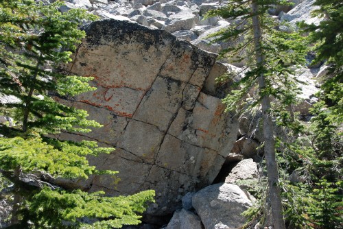 Since the last post on the alpine blocs, I’ve made it up to the Mason Boulders three times. While they aren’t going to be the mecca I was hoping for, they will definitely be a lot of fun for a long time. Last weekend Joe and I went to the Lower Mason Boulders. Unfortunately, it was pretty hot, so we avoided the talus and stayed in the trees developing a large boulder, the Mosquito Boulder. We put up about 8 new problems from V1 to about V5, with most being average quality. The one standout was “Deet” a V4 that Joe did. Dead vertical with good hand holds and poor feet. I got video of Joe doing it, see below.