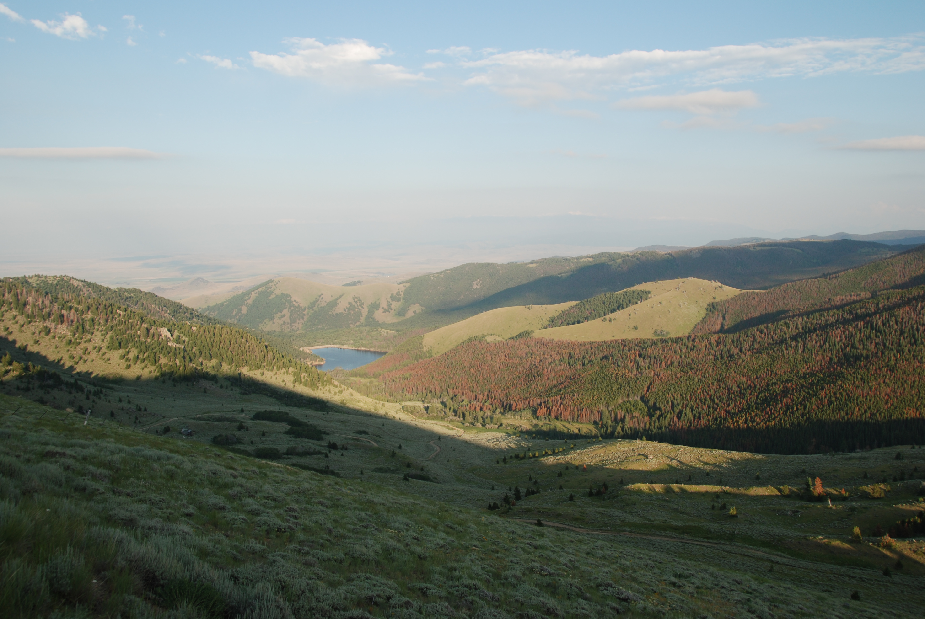 I went up to Hollowtop Mountain yesterday, mostly just for a fun peak/hike, but also to see what kind of rock was visible from the highest peak in the Tobacco Roots. The views didn’t disapoint… Here’s the canyon that caught my eye.